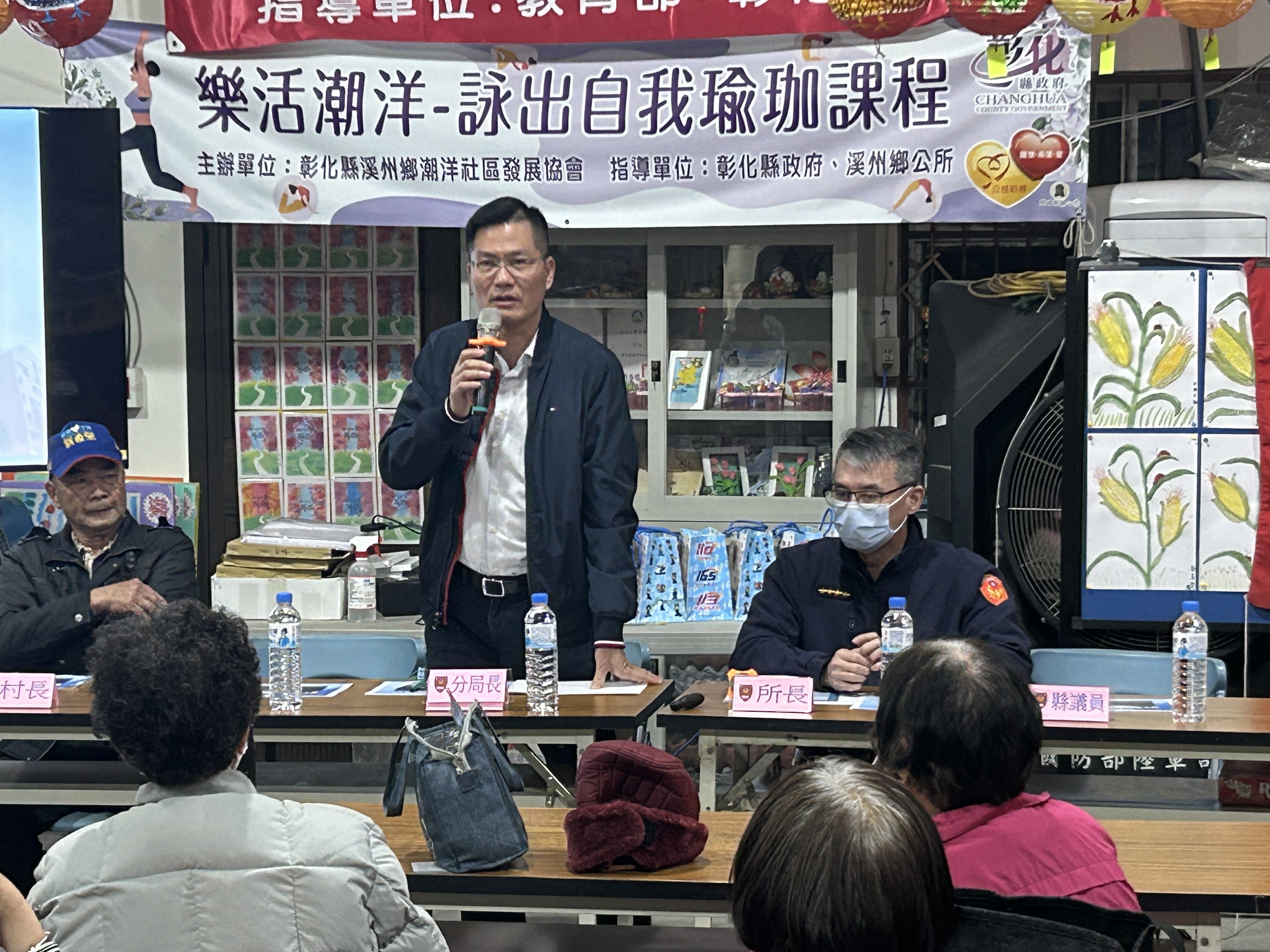 農曆春節將近,為確保民眾安心過節,彰化縣警察局北斗分局於1月23日晚間,特別前進溪州鄉潮洋村社區活動中心舉辦社區治安會議。會議由分局長楊志源親自主持,與溪州鄉長江淑芬、縣政顧問劉侑信、潮洋村長孫樹生及現場超過50位村民直接對話,針對近期猖獗的AI詐騙手法與春節交通安全重點,進行深入宣導。