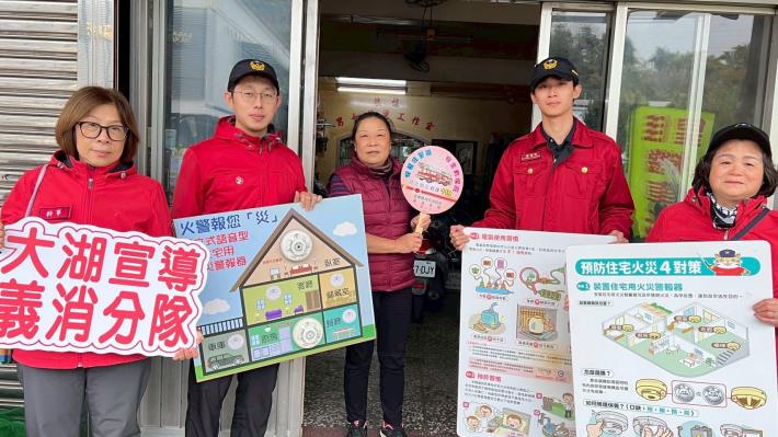 為了提升民眾的居家防火意識,苗栗縣消防局大湖分隊於2月1日偕同義消人員,一同前往大湖鄉義和村進行防火宣導。消防人員透過面對面的講解與案例分享,向居民強調「住宅用火災警報器」(住警器)與日常「用電安全」的重要性,從根本上降低火災發生的風險。