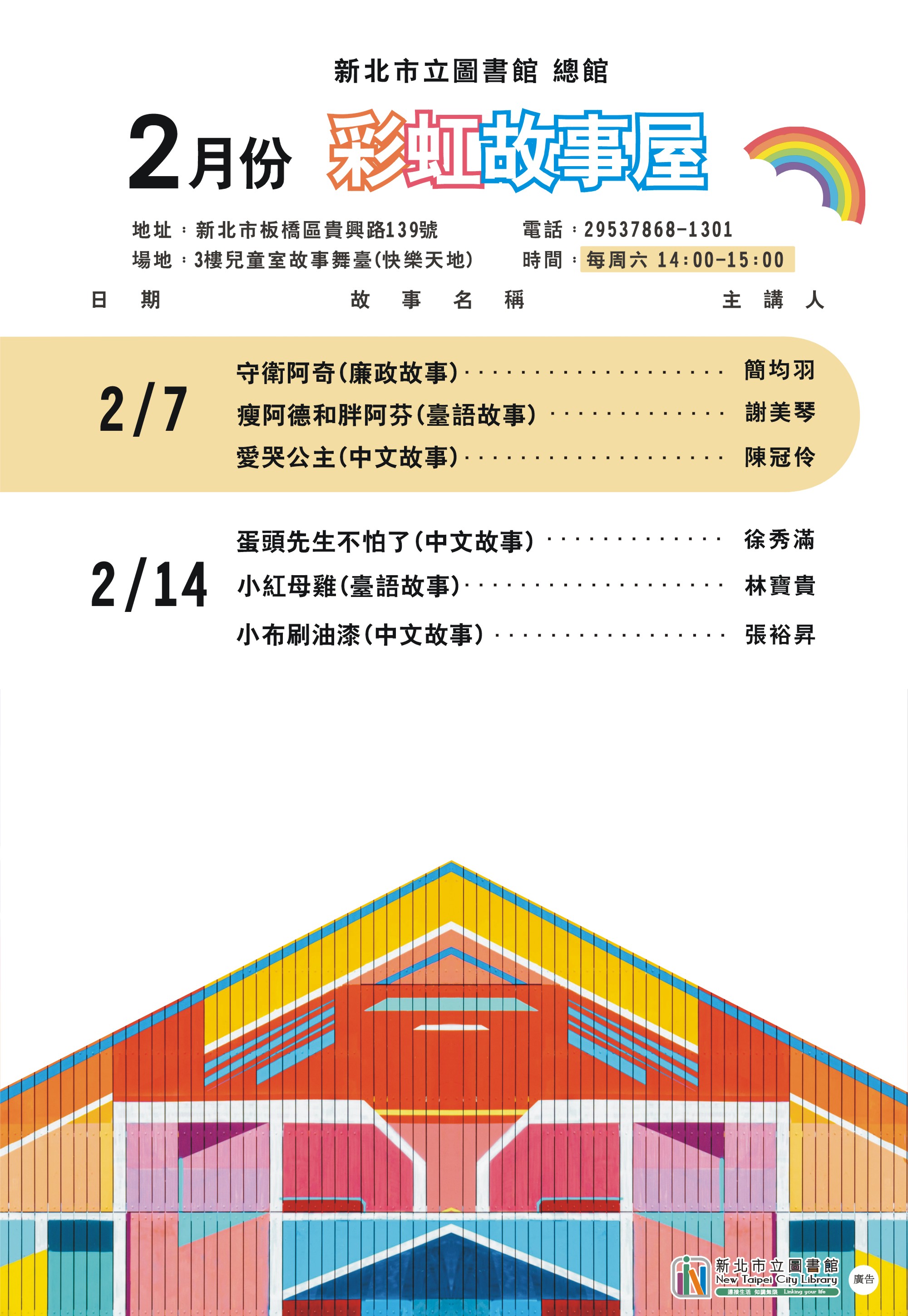寒假何處去?新北市立圖書館總館將在2月7日舉辦「彩虹故事屋」親子活動,邀請大小朋友免費參加,透過精彩的中、臺語故事共度週六午後。提醒家長本月僅此一場,其餘場次暫停。