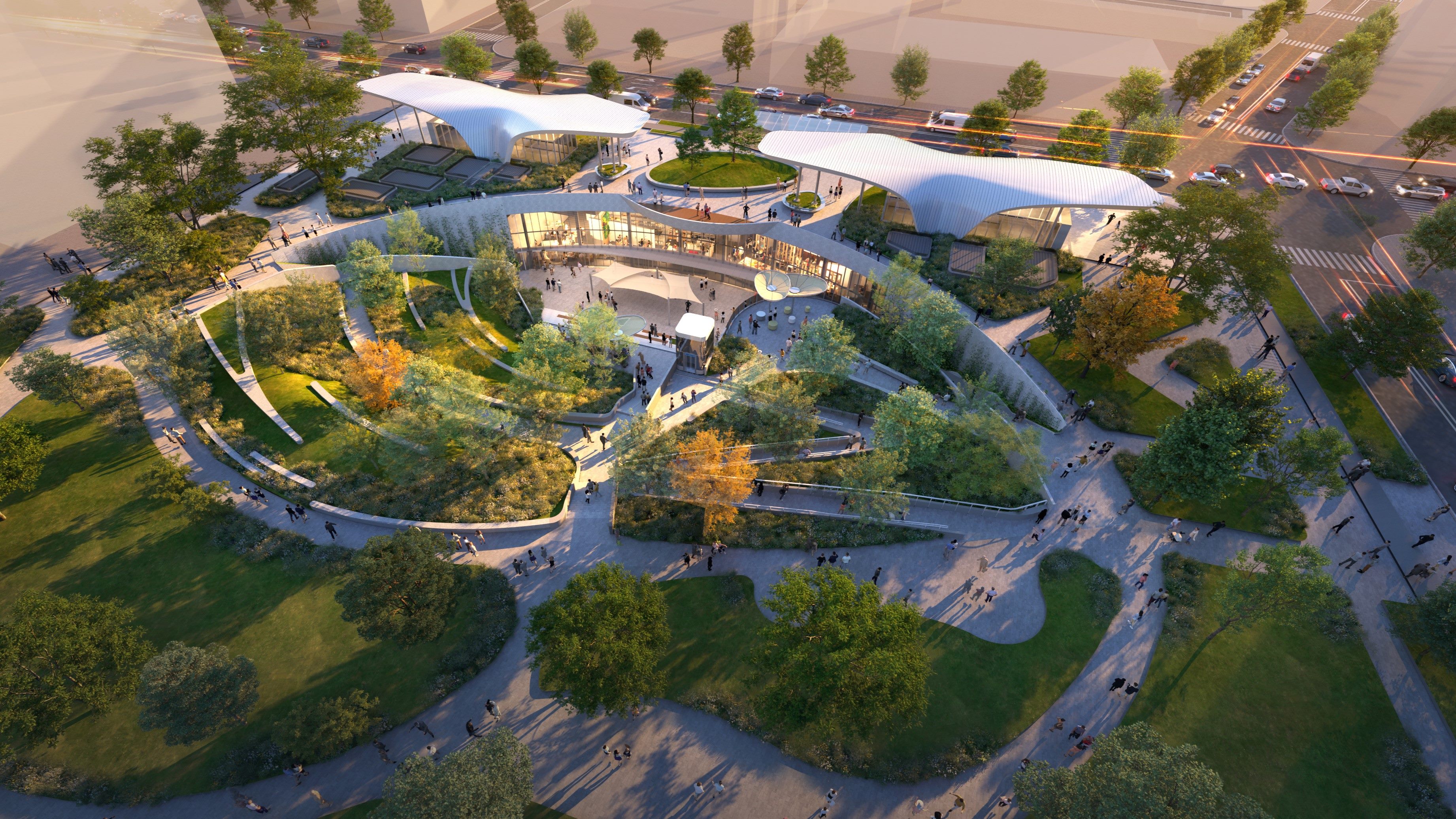 下凹式廣場亮相 宛如大安森林公園站