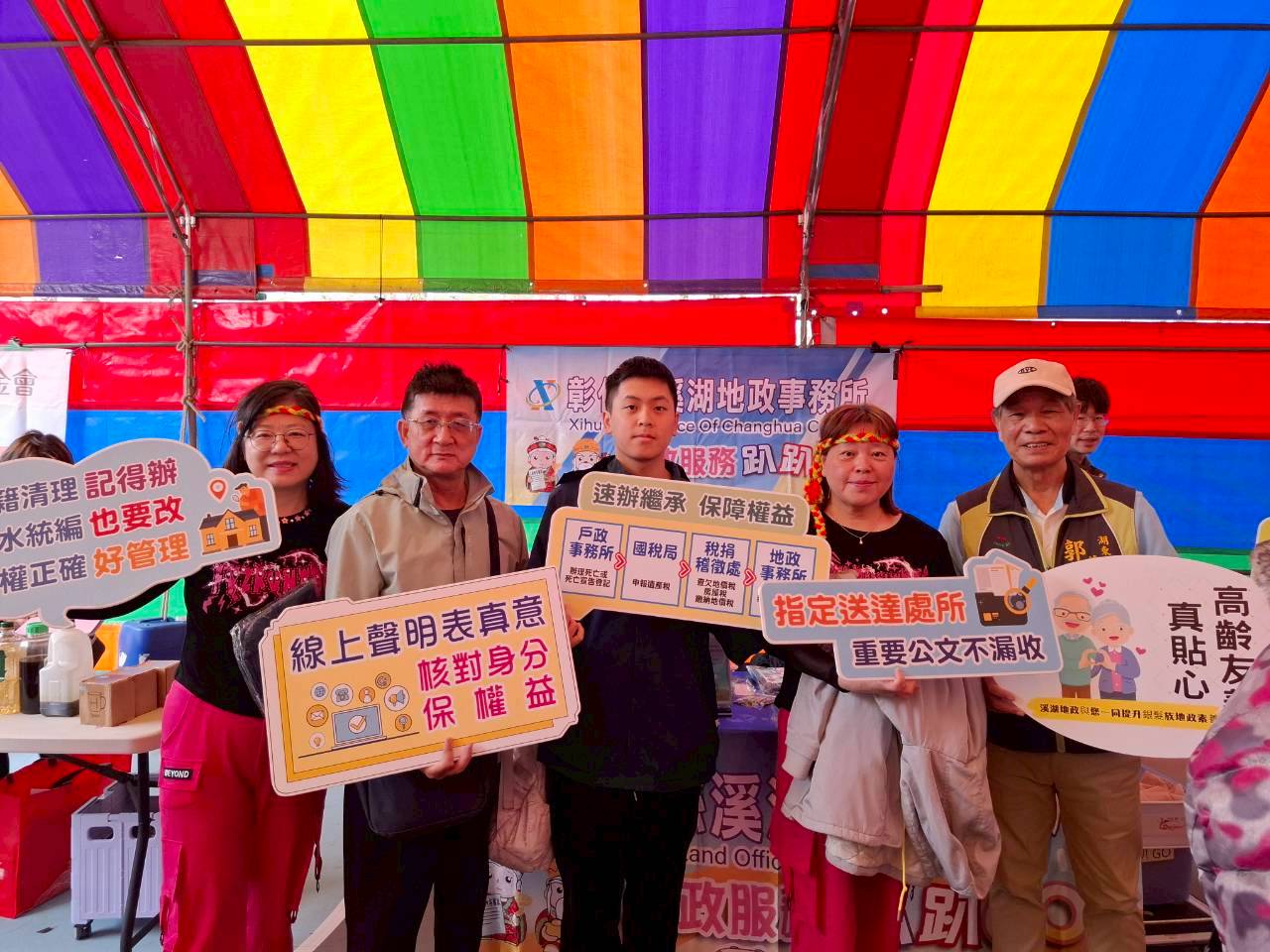 彰化縣溪湖地政事務所為了讓地政服務更貼近民眾,於2月1日(週日)上午,特別將服務櫃台搬到戶外,在溪湖鎮湖東運動公園舉辦「地政服務趴趴GO」活動,吸引了許多鄉親熱情參與。活動現場除了提供地政法令諮詢,更主打防詐騙宣導,讓民眾大讚「實用又貼心」。