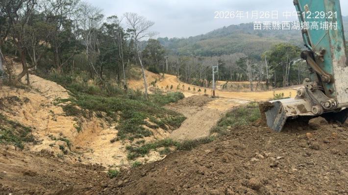 苗栗縣政府再次展現守護山林的決心!1月26日,縣府接獲苗栗縣警察局通霄分局通報,於西湖鄉高埔村苗128線附近,查獲一起近3公頃的大規模山坡地濫墾案。業者不僅未經申請擅自開挖,更令人震驚的是,現場還回填了大量來源不明的土方。縣府除依《水土保持法》當場勒令停工外,也強調將對土方來源啟動跨局處聯合稽查,誓言絕不讓苗栗的好山好水淪為不肖業者的非法棄土場。